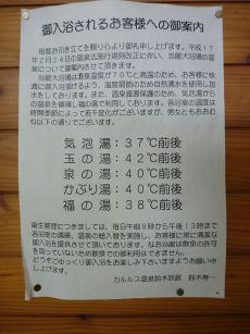 福の湯(打たせ湯。気泡の湯からの使用)、泉の湯(加水)、