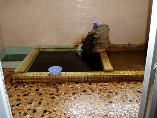 内風呂(クロレラ天然温泉浴槽とラジウム温泉浴槽)。水風呂。 |