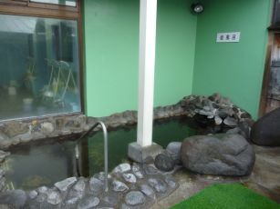 ・半露天風呂と五右衛門風呂は掛け流しの様子。