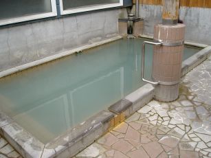 単純硫黄温泉(弱酸性低張性高温泉)。(硫化水素型) マグネシウム味・硫黄臭・灰色。 |