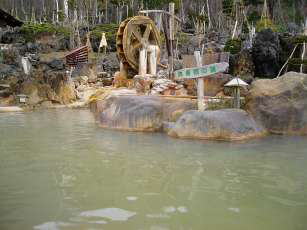 露天風呂(無意根の湯)⇔露天風呂(遊湯の露天、ふくろうの湯)。