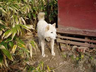 ・第2駐車場の側に温泉犬2匹居ました。吼えましたが、そっと近づいてお友達になりました。(^^)v