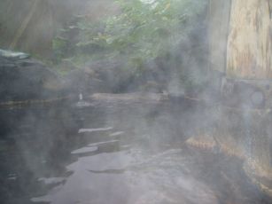 内風呂3(目薬の湯は透明。元湯・寝風呂は薄い黄濁色)。露天風呂2(屋根付は透明。屋根無しは黄濁色)。 |