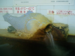 金気臭。微緑色透明(加熱)。微黒色透明(源泉)。金気+微炭酸?味。 |
