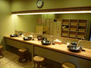 内風呂(大・小)。露天風呂。露天陶器風呂。水風呂。サウナ。 |