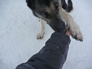 温泉犬発見しました。レッド君で最初は吠えますが、近づくと懐きます。
