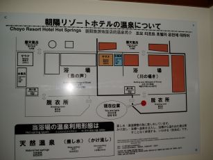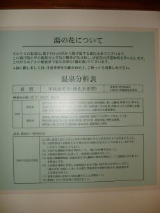 内風呂・・・・・微硫黄臭、無色透明、微硫黄味、白い湯の華有り。